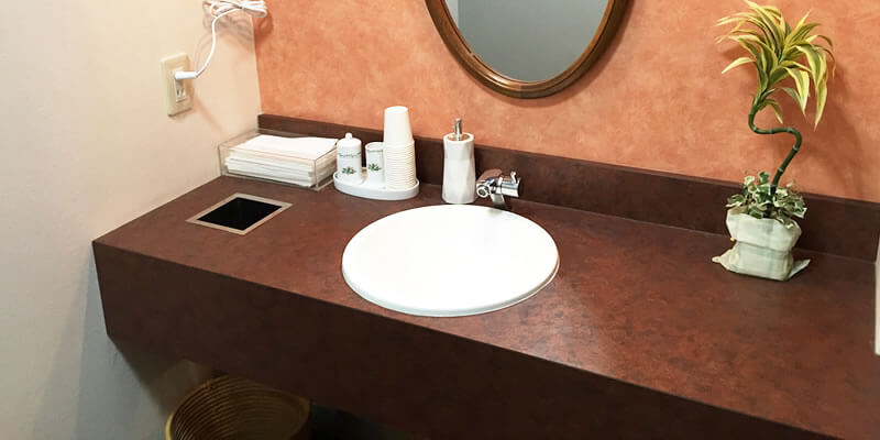 ▼落ち着いたモダンな雰囲気のパウダールーム。